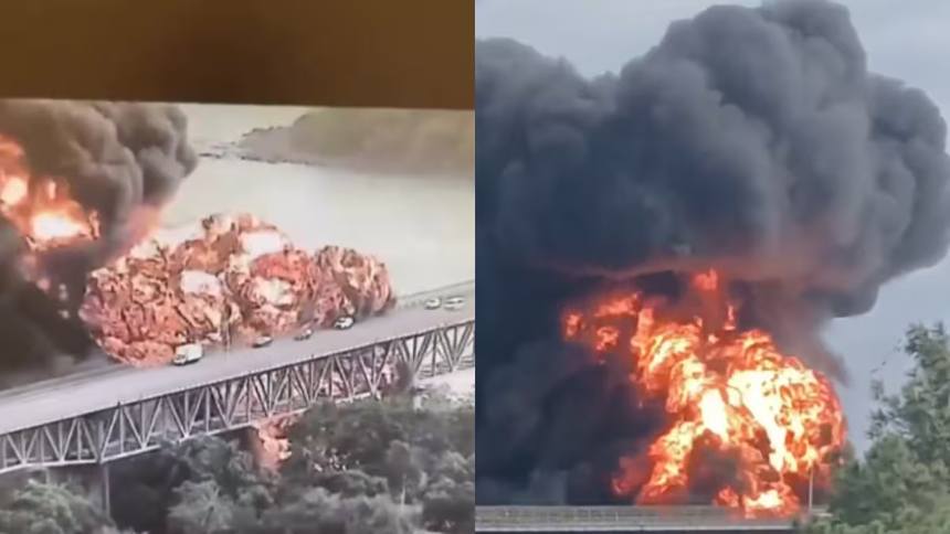 Las impactantes imágenes que dejó la explosión de cisternas de combustible en el puente más antiguo sobre el Canal de Panamá