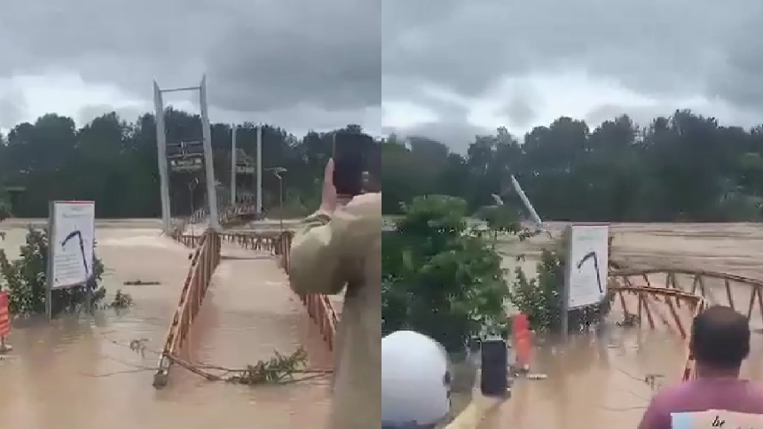EN VIDEO: Devastadoras inundaciones derrumbaron un puente colgante en Vietnam tras fuertes lluvias