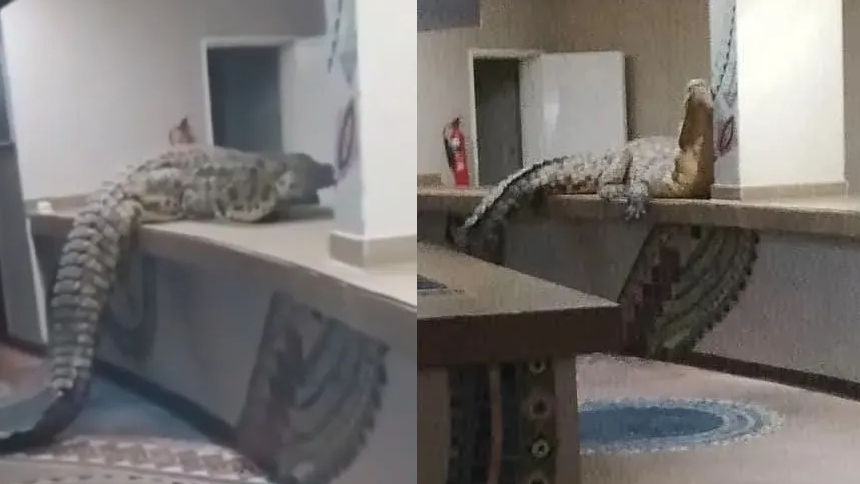 VIRAL: Enorme cocodrilo causó pánico al irrumpir en la cocina de un lujoso hotel