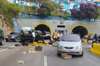 Camioneta se volcó en la salida del túnel La Planicie este 25May tras «giro imprudente»