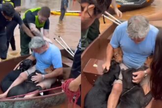 El conmovedor rescate de un hombre y sus cuatro perritos en las inundaciones en Brasil