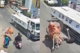 INDIA: Un toro embistió brutalmente a un motorizado y la grabación se volvió viral en las redes