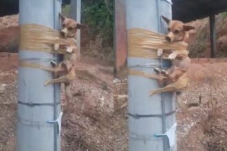 El indignante video de un perrito que fue amarrado a un poste por un vecino porque defecaba frente a su casa