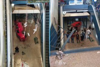 VIRAL: Carro cayó al vacío hasta sótano de centro comercial de Maracay, hubo dos heridos