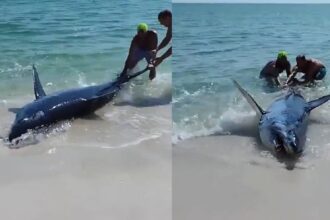 EN VIDEO: Tiburón encalló en una playa de Florida, esto hicieron los bañistas con él