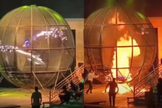 Impactante video Viral: Show de motos terminó en desastre, un acróbata cayó y terminó envuelto en llamas