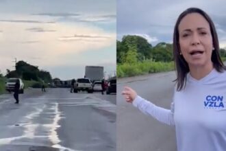 Encapuchados chavistas trancaron con palos la carretera para que María Corina no entrara a Valle de la Pascua