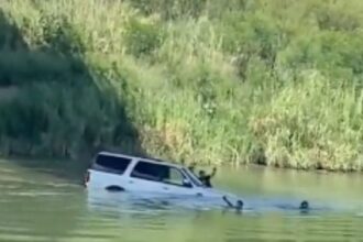 El impresionante video de una persecución policial que terminó con una camioneta en las aguas del Río Bravo