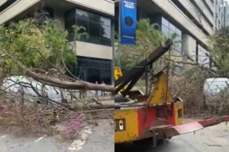 Gran árbol cayó sobre un carro cerca de la plaza La Castellana, de Caracas