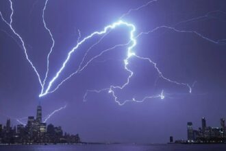EN VIDEO | El momento en que un rayo iluminó Nueva York al caer sobre un rascacielos del WTC