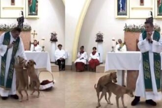 EN VIDEO | La cómica reacción de un sacerdote al ver a perritos apareándose en el altar de la iglesia