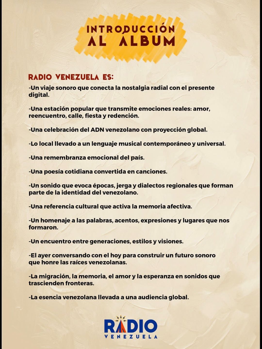 (EFE).- El dúo Chyno y Nacho presentó este jueves su nuevo álbum ‘Radio Venezuela’, un proyecto ideado por Nacho Mendoza junto con su sobrino Ignacio ‘Happy’ Mendoza, que reúne a una amplia representación de artistas venezolanos y toma como eje simbólico a la radio como vínculo con el país.