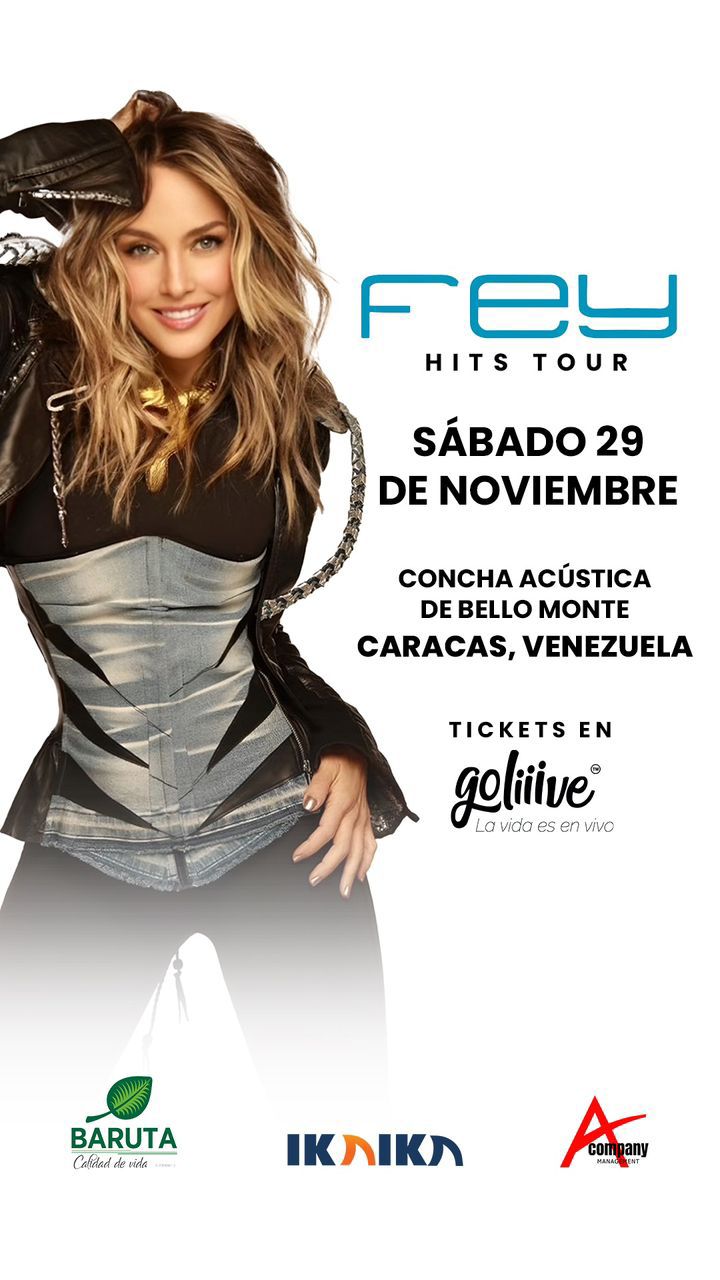 La cantante, en el marco de su exitosa gira «Fey Hits Tour 2025», se presentará en la Concha Acústica de Bello Monte de Caracas, el próximo 29 de noviembre.