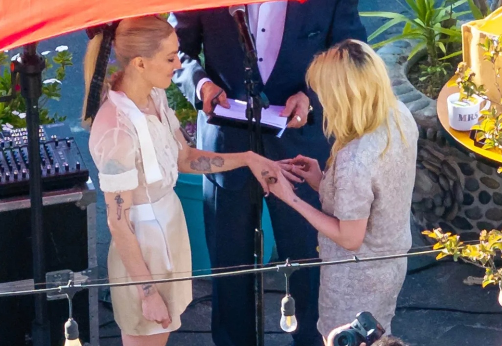 Hace pocos días se filtraron unas fotos de Stewart y Meter intercambiando votos en una ceremonia íntima celebrada en su casa. Ambas estaban con ropa informal y la guionista cargaba un ramo de flores.