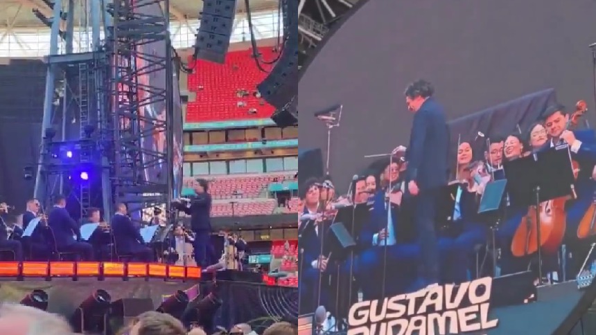 Ensayo de Gustavo Dudamel y la Orquesta Sinfónica Simón Bolívar en el estadio de Wembley, Londres. 🥹🇻🇪 #ColdplayVenezuela pic.twitter.com/lCYK4t6SxA