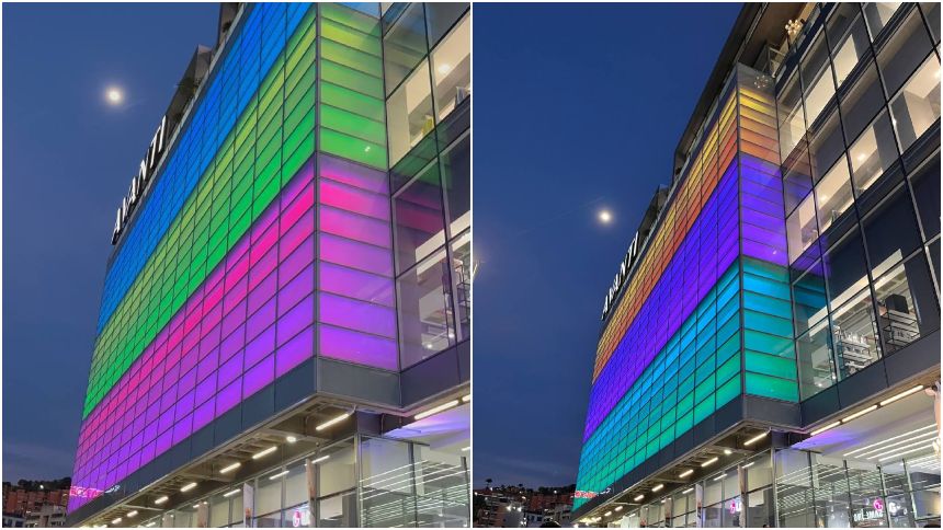 La obra comienza con la fachada llena de coloridas luces en Avanti y continúo con un túnel de color en el lobby, dejándose ver los diferentes estilos en cada piso de la galería, en el primer piso el color verde, en el segundo el violeta, en el tercero el azul, en el cuarto el color rosa y en el piso cinco naranja y rojo.