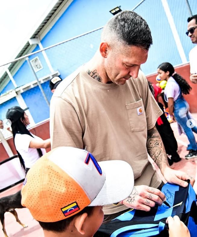 «¡Petare vibra con el deporte monumental! Nuestras leyendas, Guti y Marco Materazzi llegaron a Petare para compartir con la comunidad», se puede leer en una de las publicaciones de la cuenta de Instagram de la Liga Monumental, acompañada con una foto del español y el italiano rodeado de lugareños.