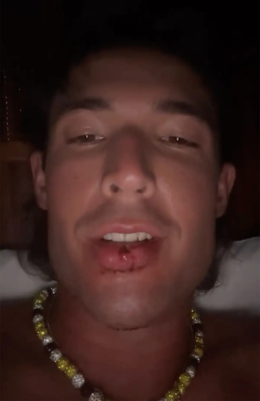 En sus Instagram Stories, el jardinero se mostró descansando con el labio visiblemente lastimado.