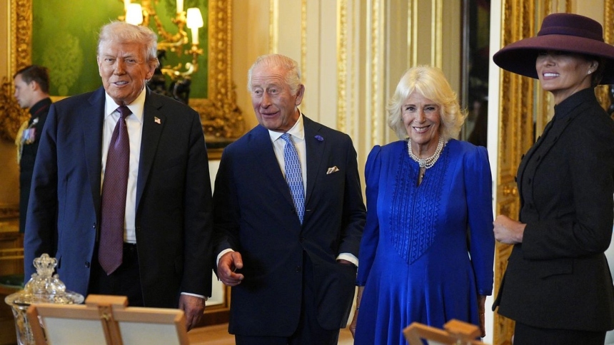 El encuentro entre Trump y la familia real británica estuvo cargado de simbolismo diplomático. Carlos III obsequió al presidente la bandera británica que ondeaba sobre el Palacio de Buckingham el día de su investidura, mientras que Melania recibió un cuenco de plata típico de Irlanda del Norte y un bolso personalizado.