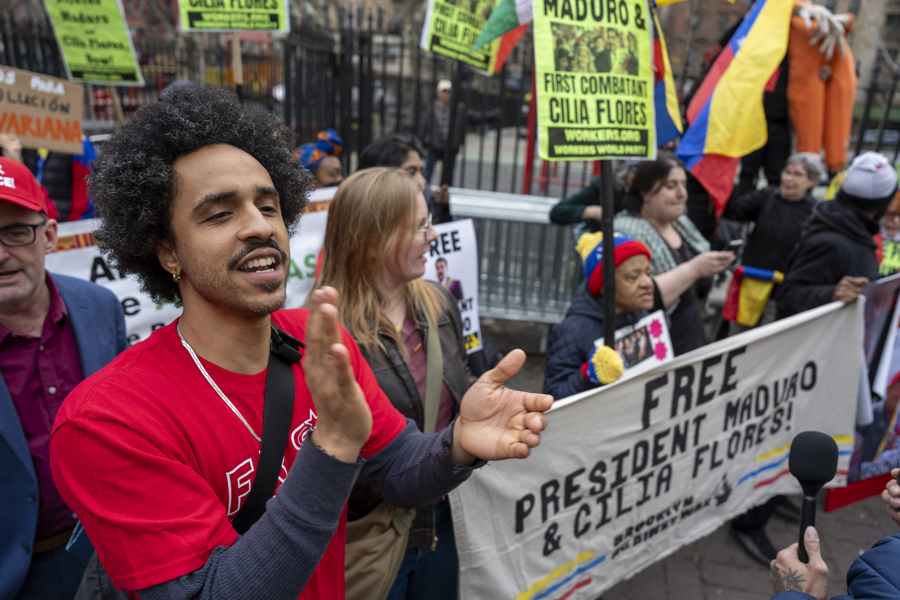 “Realmente no sabemos de qué se trata esta audiencia, pero queremos venir y mostrarle apoyo a Maduro y a Flores”, afirmó Brenda Sandberg, del partido Worker World Party.