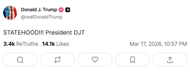«STATEHOOD!!!», escribió en su cuenta de Truth Social luego de que Venezuela doblegara a los Estados Unidos en la final del la justa mundialista celebrada en Miami.