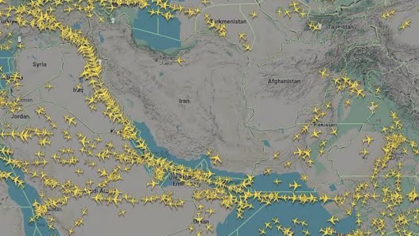 Las visualizaciones de tráfico aéreo de Flightradar24 mostraron durante ese periodo un cielo iraní prácticamente desierto, con la ausencia casi total de aeronaves sobrevolando el país.