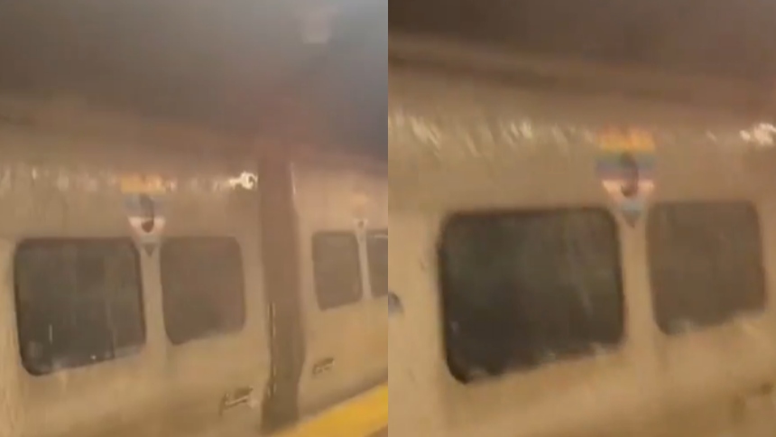 Un video grabado por un transeúnte muestra cómo las aguas de la inundación ingresaron a la terminal desde arriba y caían sobre el techo del tren de la línea Hudson que salía alrededor de las 4:00 de la tarde.