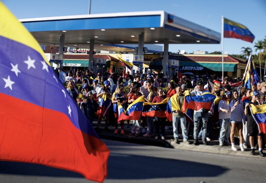 En el icónico restaurante El Arepazo, corazón de «Doralzuela» en Florida, las estrofas del himno nacional, «Gloria al bravo pueblo», sonaron con una fuerza inusual apenas salió el sol.