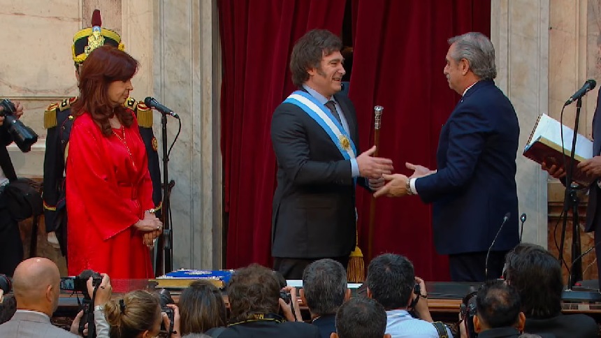 EN VIDEO: El momento en que Javier Milei recibió la banda presidencial tras asumir como nuevo mandatario de Argentina
