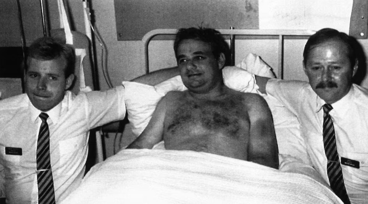 «La descompresión explosiva hizo que toda la cabina se empañara como niebla por un segundo, luego el avión comenzó a caer en picada», relató Nigel Ogden, auxiliar de vuelo que sujetó la cintura del piloto.