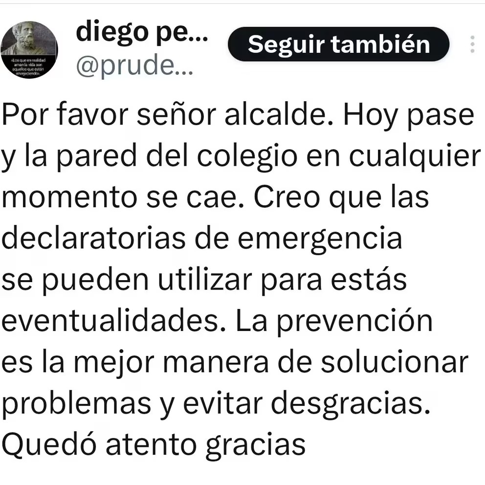 En su cuenta de X (Twitter), Turbay explicó que la intervención de la pared formaba parte de las primeras acciones del plan de rehabilitación. «Hace un mes, un ciudadano nos advirtió del peligro inminente que representaba una pared en riesgo de colapso. Decidimos actuar de inmediato”.