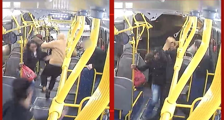 En las imágenes captadas desde el interior del autobús, se observa el momento en que los pasajeros escuchan el primer silbato del tren y comienzan a reaccionar. Ocho segundos después, una nueva bocina más fuerte genera mayor alarma dentro del vehículo.