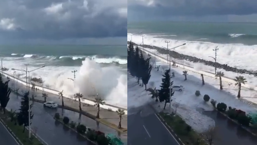 En las redes sociales circularon las impactantes imágenes de los efectos de la tormenta en Giresun. En un video se ve a grandes olas golpeando la costa y, en cuestión de segundos, llenando de agua la avenida.