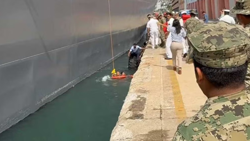 En el video viral se aprecia que los marinos japoneses lanzaron un flotador desde la cubierta para auxiliar a la bailarina. Por su parte, un funcionario de la Secretaría de Marina de México saltó al agua para ayudar a la joven.