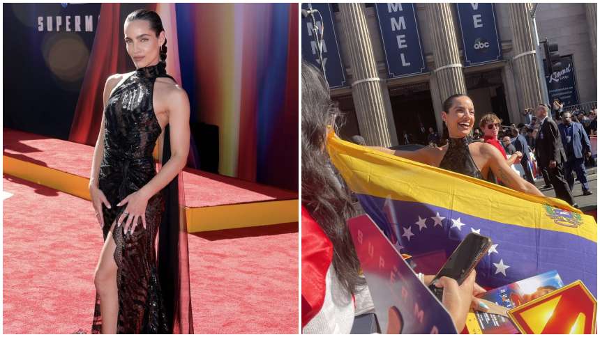 EN VIDEO: María Gabriela de Faría deslumbró en el estreno mundial de «Superman: Legacy» y sacó su bandera de Venezuela