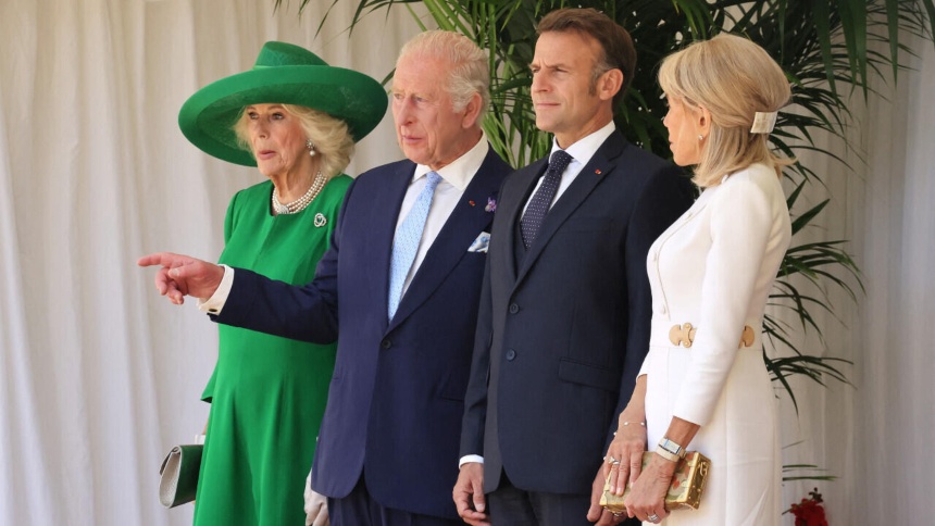 Otra vez Emmanuel Macron: El video viral del incómodo momento que vivió con su esposa al bajar de un avión en Reino Unido