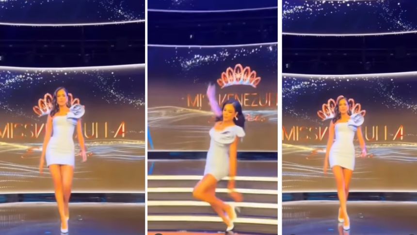 Todo quedó grabado: Diana Silva casi se cayó por unas escaleras durante su participación en el «Miss Venezuela: El Reto»