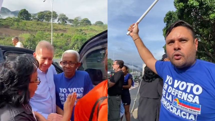 Después de varias horas parados en medio de la autopista, Edmundo González se detuvo y saludó a los activistas retenidos. En el video se aprecia al candidato tomándose foto con las personas en la autopista.