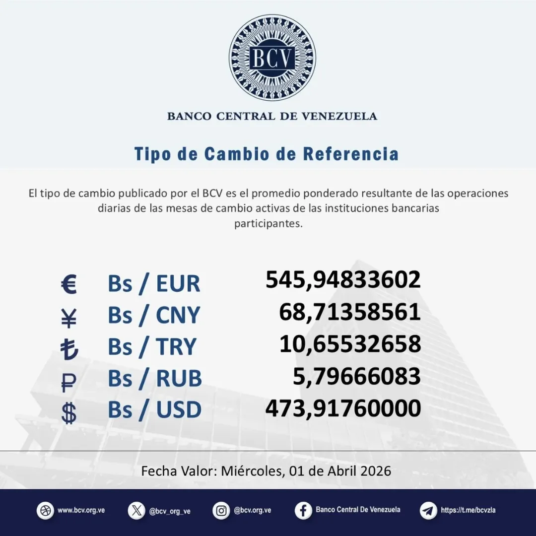 El dólar oficial inició la jornada de este 1 de abril con tendencia alcista al cotizarse en Bs. 473,92.