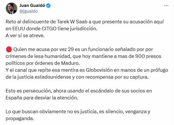 Asimismo, Guaidó acotó que «esto es persecución, ahora usando el escándalo de sus socios en España para desviar la atención».