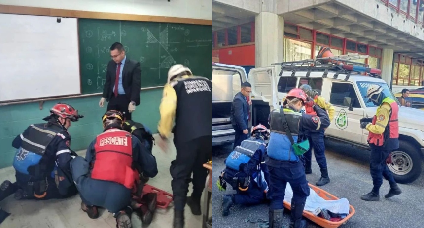 Según algunos testigos, el profesor estaba dando clases cuando de pronto cayó al suelo por un malestar. De inmediato llamaron a los servicios de emergencia y los primeros en llegar fueron los bomberos universitarios quienes le prestaron primeros auxilios.
