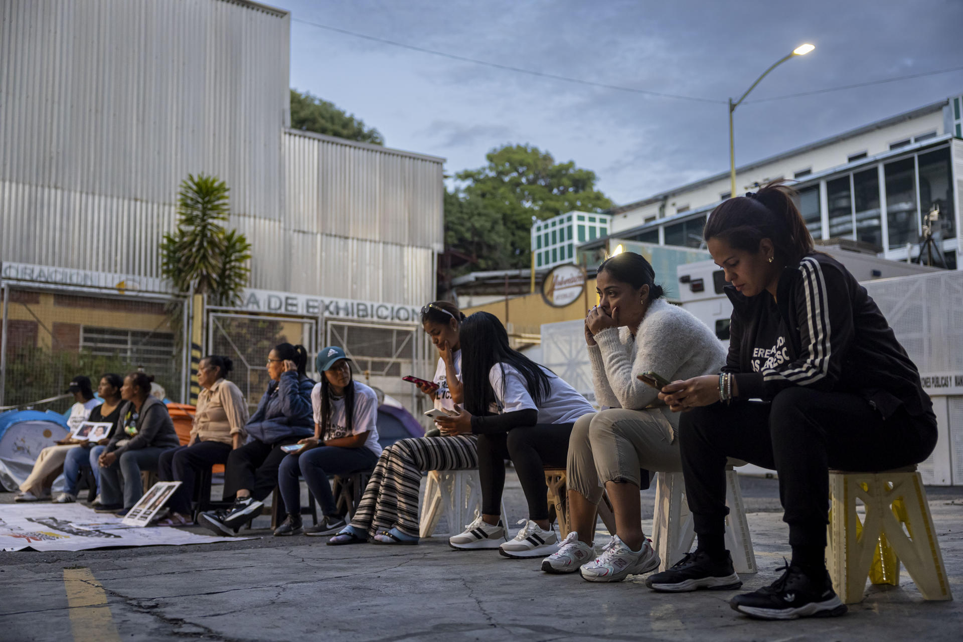 Familiares de presos políticos siguen concentrados en un campamento frente a un comando de la Policía Nacional Bolivariana en Boleíta al este de Caracas para exhortar a las autoridades que sigan las liberaciones de presos políticos.
