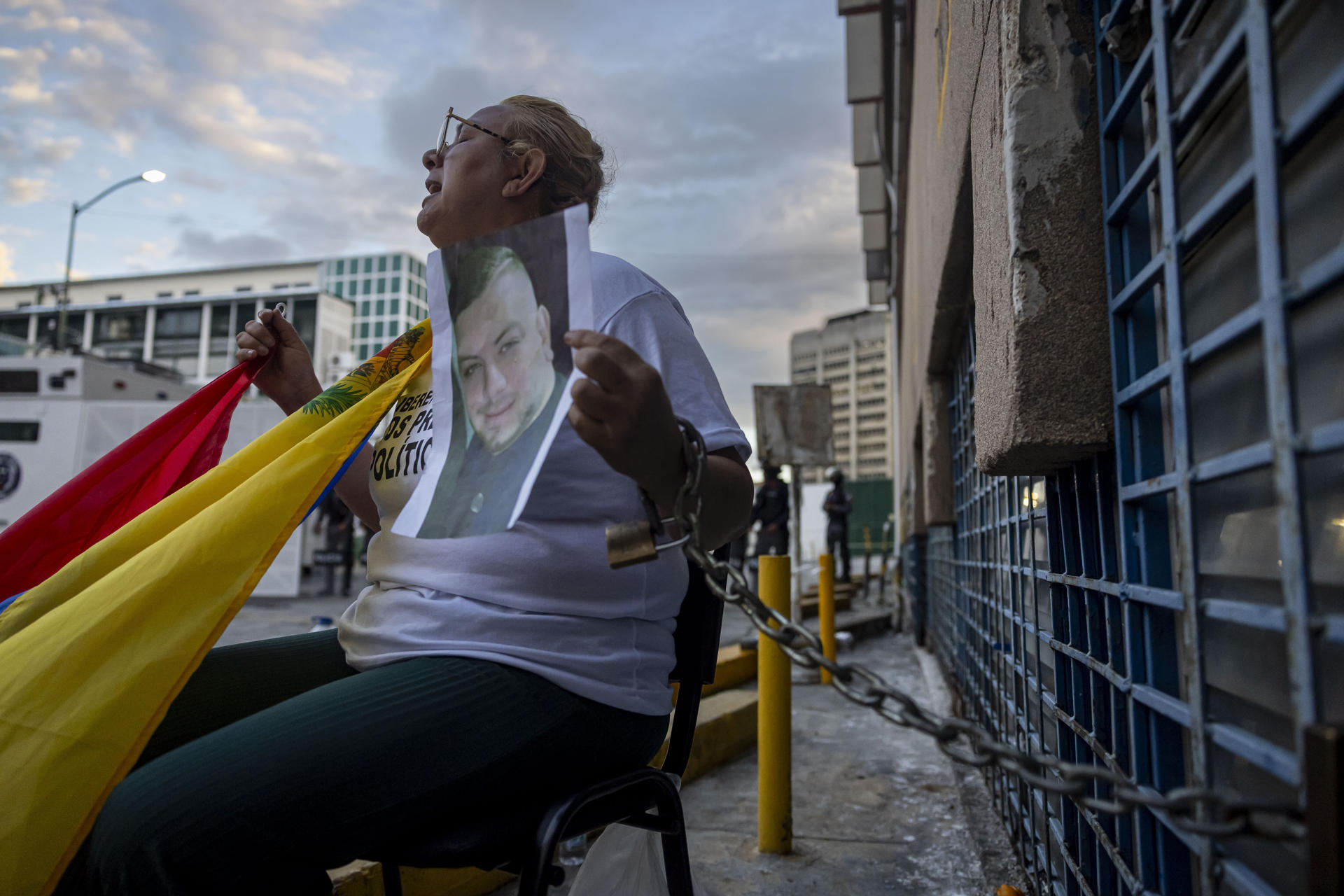 Flores explicó que su hijo, Bruno Juárez, está encarcelado en la comisaría policial de La Yaguara, en el oeste de Caracas, y que lo visitó antes de participar en la protesta.