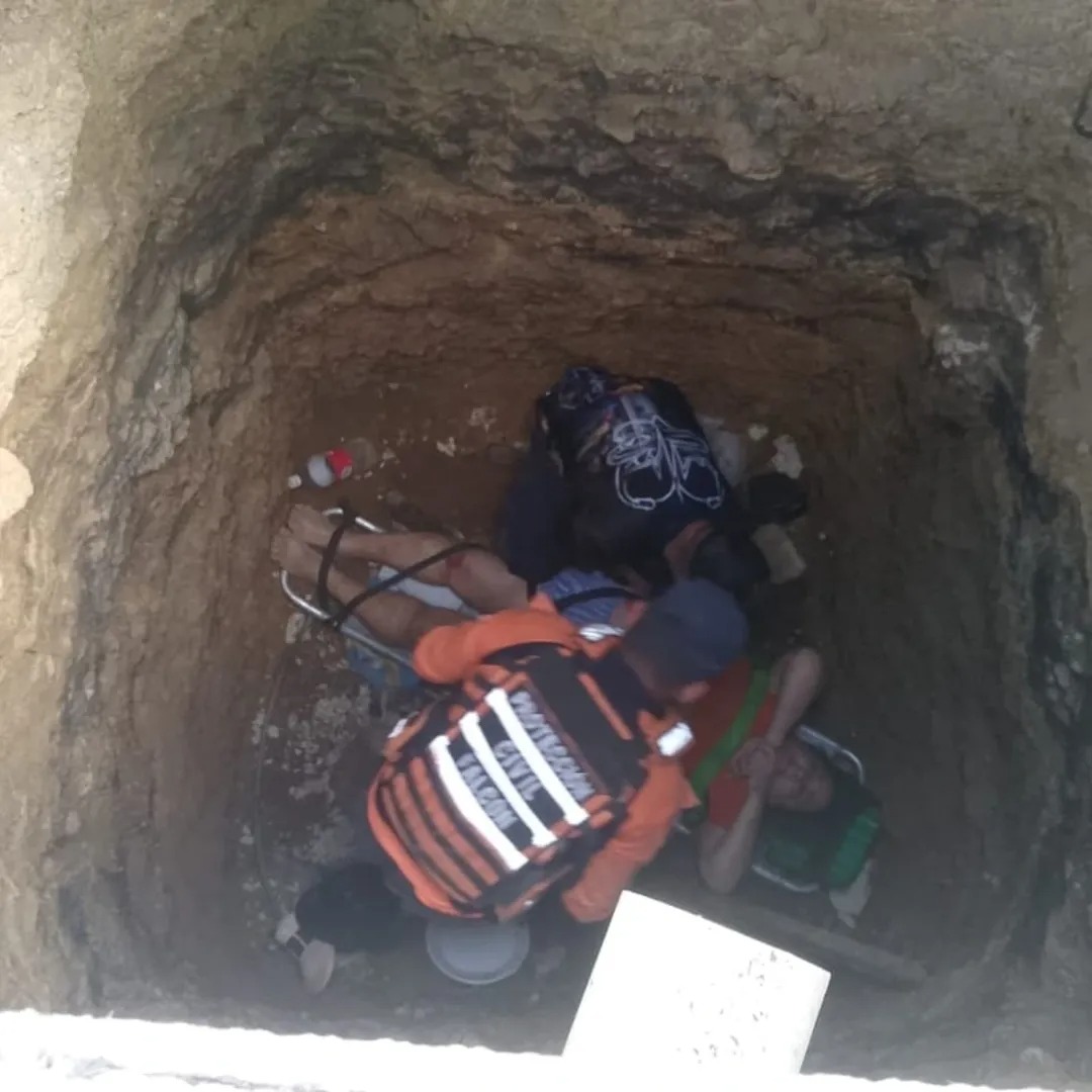 En las imágenes compartidas, se puede ver como dos funcionarios bajaron hasta el pozo y lograron inmovilizar a la lesionada en una camilla para posteriormente proceder a subirla.