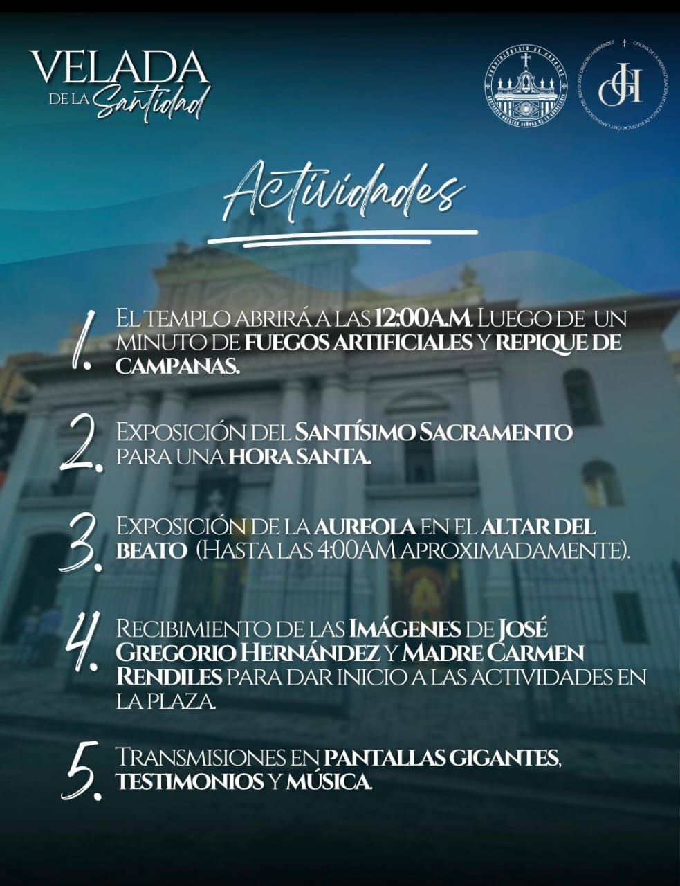 El próximo domingo 19 de octubre, el templo será el epicentro de la fe nacional al acoger la «Velada de la Santidad». Este es un evento extraordinario para transmitir en pantalla gigante y en directo desde Roma la elevación a los altares de los dos primeros santos venezolanos. San José Gregorio Hernández y Santa Carmen Rendiles.