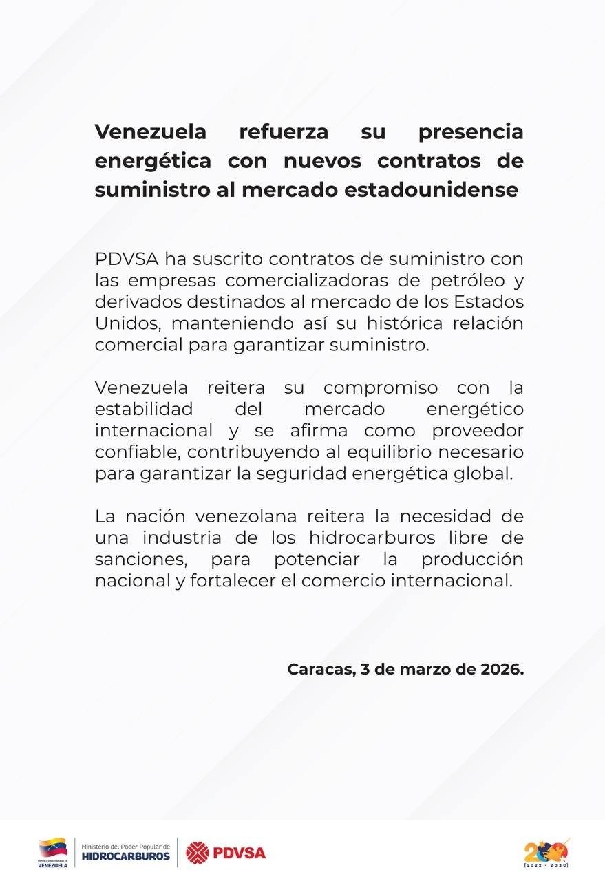 A través del texto, se señaló que estos contratos mantienen la «histórica relación comercial» con Estados Unidos y reiteró «su compromiso con la estabilidad del mercado energético internacional», a la par que insistió en la petición del Gobierno venezolano para el cese de sanciones impuestas a la industria.