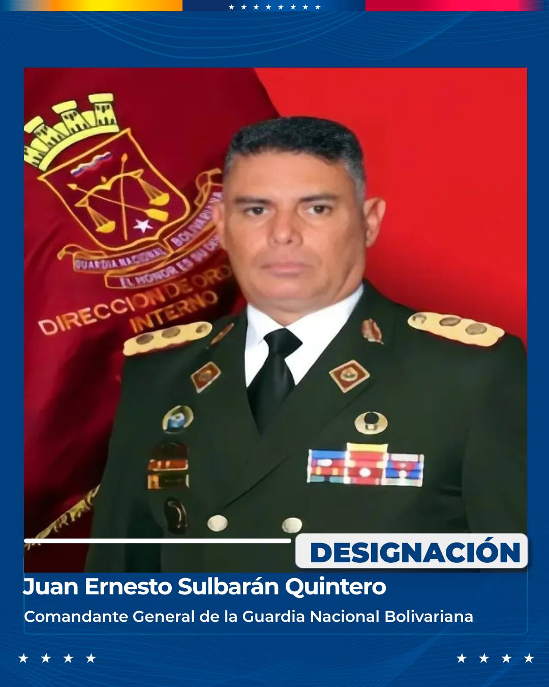 Para la GNB designó como nuevo comandante a Juan Ernesto Sulbarán Quintero. En esta línea, señaló que el nuevo comandante general del Ejército será Rubén Dario Belzares Escobar.